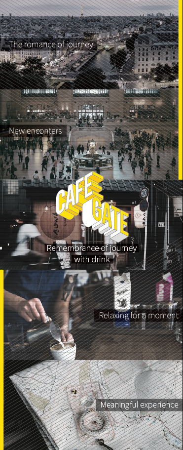 By placing images of various travel destinations and cafes’ images together, it conveys a sense of relaxation and relief from everyday life.