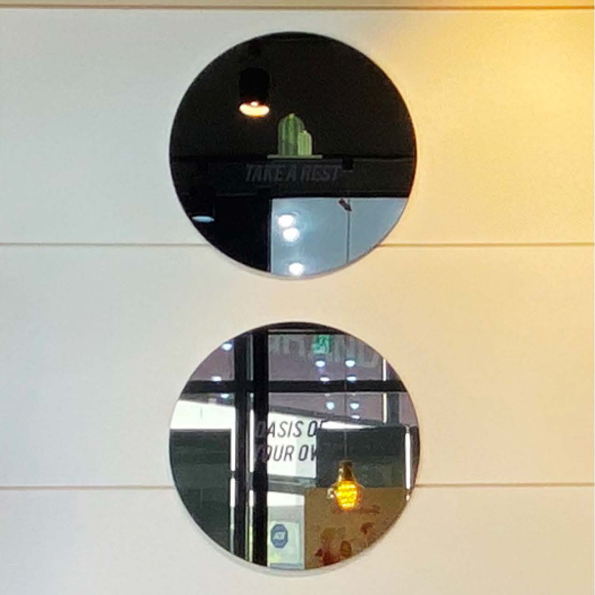 A round mirror was installed on one wall to visually expand the space. This mirror goes beyond simple decoration to amplify the sense of depth in the space and dramatically reduces the narrow and stuffy image by reflecting natural light. The strategic placement of the mirrors created the effect of making the narrow space look more open and spacious.