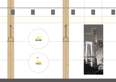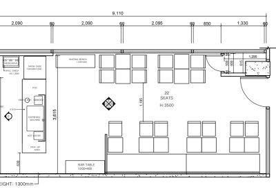 The existing design manual adopted a method of fixing the menu board to the upper fixed shelf, but a pre-study found that this would make the space feel stuffy and limit the view.