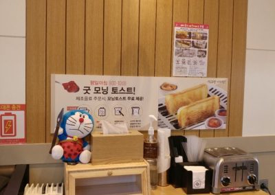 To overcome these limitations, a new solution called an open metal frame was introduced, completely breaking away from the existing heavy shelf structure to create a light and transparent feel. In particular, the thin and stylish frame line and the angle of the menu board that falls in line with the view secured the visual depth of the space while maximizing the readability of the menu board.