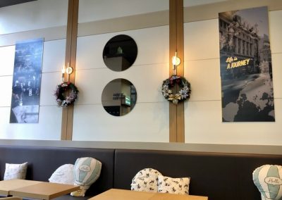 The core of this design is ‘openness’. The original high ceiling was utilized, and lightweight steel frames were used as structures, such as ceiling rail lighting and menu boards instead of the existing stuffy structure, to complement the limitations of structures that could create a stuffy feeling inside the store. In addition, by adopting transparent lighting and using round mirrors, elements that could block the view were limited, allowing customers to feel an open view and visual ventilation.